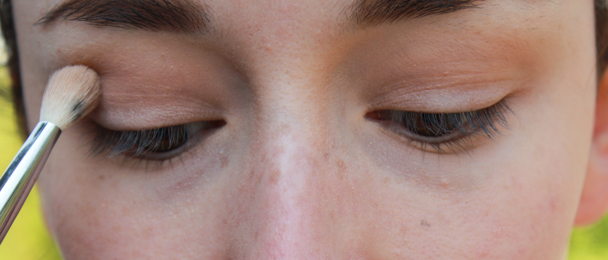 Première étape : Le fard de transition, un marron clair très naturel ou selon votre couleur de peau. Un fard mat de préférence. Ce sera la couleur de transition et la première définition de l’œil. J’en mets dans mon creux de paupière en le remontant légèrement au dessus. J’utilise un pinceau fluffy qui estompe et dépose la matière en même temps.