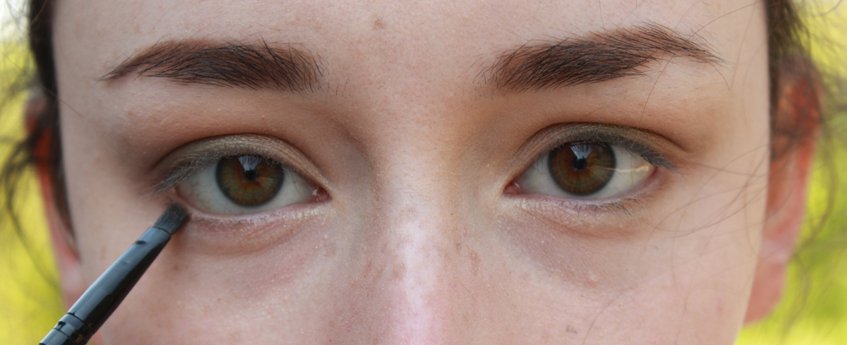 Cinquième étape : Le ras de cil inférieur. Je reprends le même fard marron que je place légèrement sur ma ligne de cils inférieur pour ne pas trop plomber mon regard.
